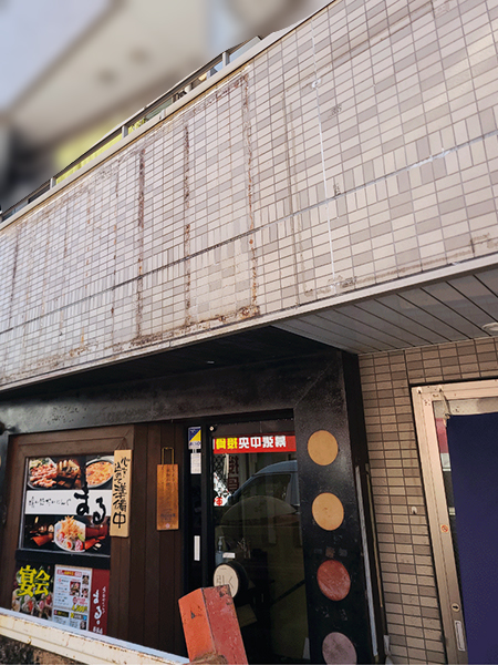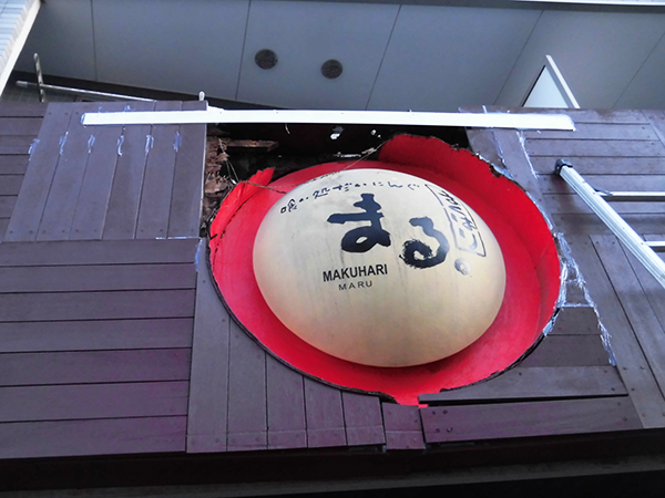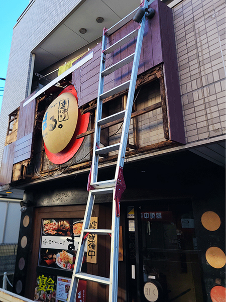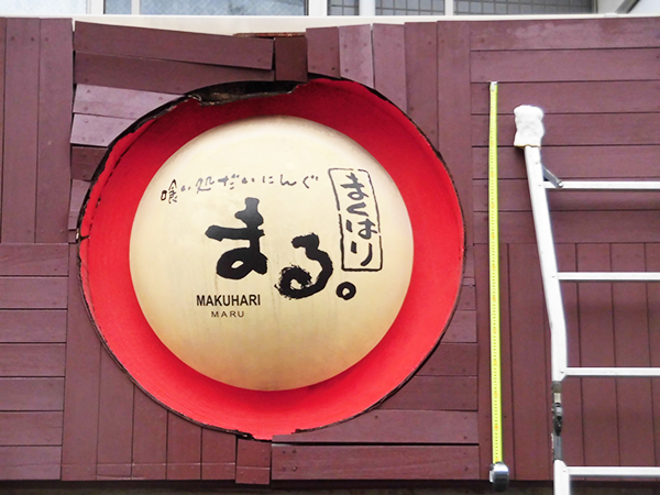 〔施工前〕:素敵な居酒屋さんの素敵な看板の上部分が破損しています…!